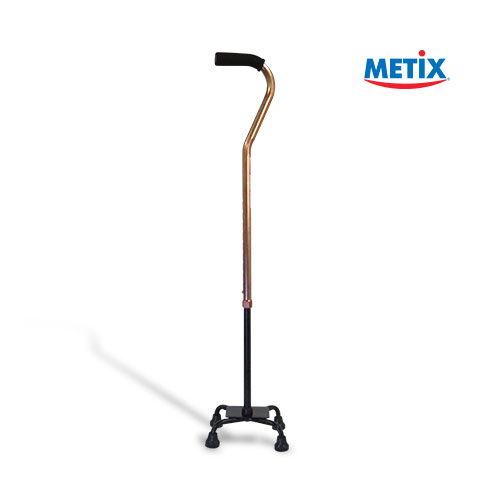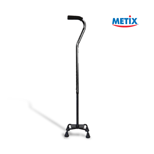 DESCRIPCIÓN: El bastón de cuatro apoyos Metix ofrece el máximo soporte y estabilidad para el usuario, mango tipo cuello de ganso cómodo y suave y base ergonómica y resistente, ideal para utilizarse en ambos lados.