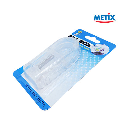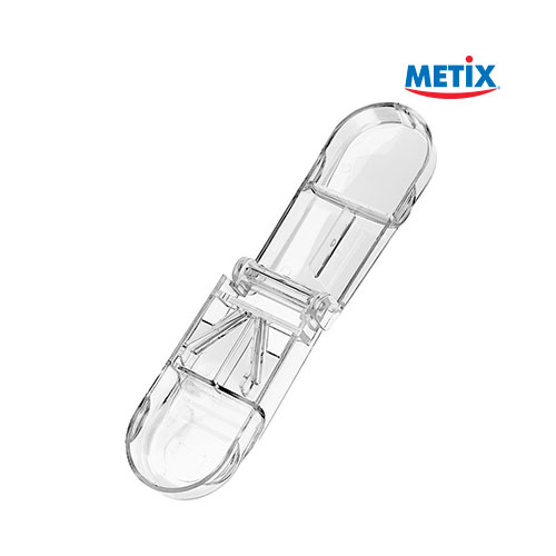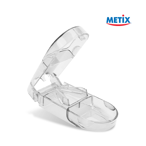 DESCRIPCIÓN: Cortapastillero Metix corta a a la mitad las pastillas sin esfuerzo para poder ingerirlas más fácilmente o para dividirlas en dosis más pequeñas.