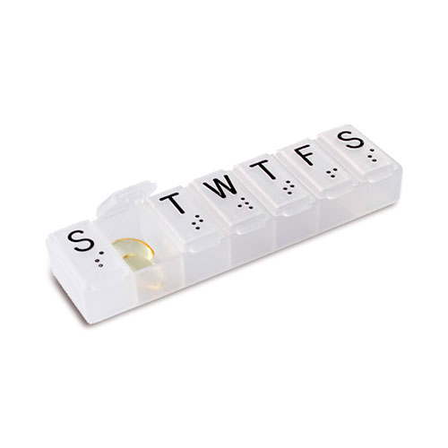 Corta Pastillas para todos los tamaños de medicamentos con compartimiento para guardar las dósis sobrantes.