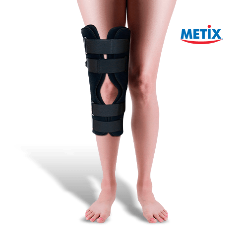 DESCRIPCIÓN: La férula para rodilla tripanel universal Metix está recomendada para traumatismos, inmovilización de rodilla o tras una lesión y recuperación post-operatoria. Permite una completa inmovilización de la rodilla extendida, generando un soporte medio/lateral.