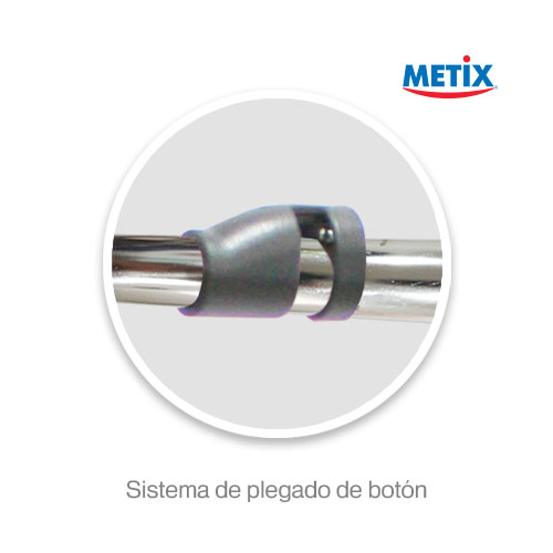 Estructura de aluminio anodizado de una pulgada de diámetro. Plegable por medio de sistema de botón con una cubierta protectora para evitar lesiones al plegar la andadera.
