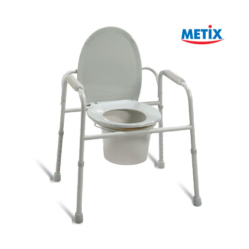 DESCRIPCIÓN: El Cómodo de acero esmaltado 3 en 1 de Metix es ideal para ayudar a los pacientes que no pueden transportarse hasta el baño. Ideal para el cuidado en el cuarto del paciente. Cuenta con asiento tipo inodoro fácil de quitar y limpiar.