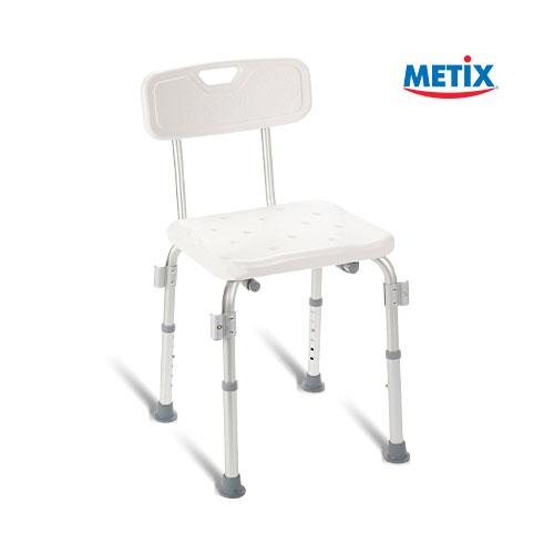 DESCRIPCIÓN: El banco ducha con respaldo y agarraderas desmontables Metix está diseñado para los usuarios que requieren permanecer sentados en la regadera o tina de baño brindándoles la máxima seguridad y comodidad gracias a su respaldo y agarraderas desmontables y sus gomas antiderrapantes.