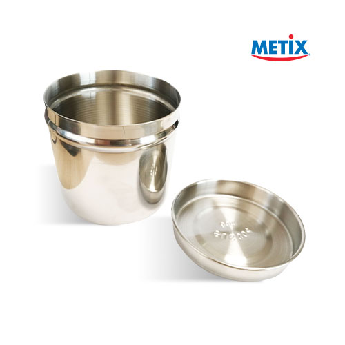 Fabricado en lámina de acero inoxidable tipo 304 Cal. 20, acabado pulido. Recipiente con tapa incluida.